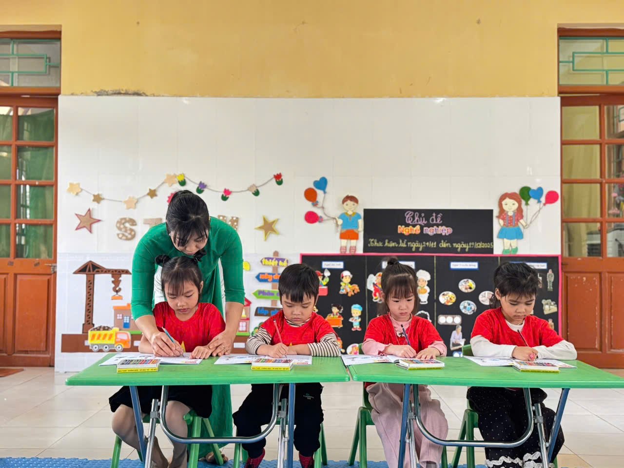 Từng bàn tay nhỏ xíu cầm bút đầy nghiêm túc, từng nét tô còn hơi vụng về nhưng chứa đựng biết bao nỗ lực và sự cố gắng của các con.